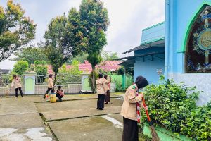 Semangat HUT Baden Powell ke-169, Anggota Pramuka MAN 1 Muara Enim Gelar Aksi Bersih Sarana Ibadah Jelang Ramadhan 2026