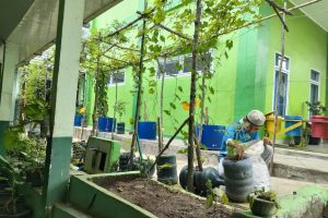 Peduli Lingkungan, Siswa MAN 1 Menim Gotong Royong Disekitar Pagar Masyarakat
