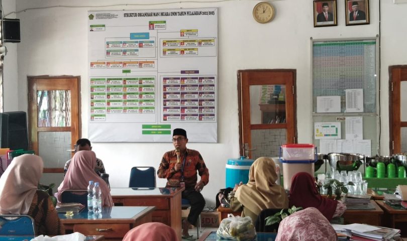“Apabila kita tidak belajar dari sekarang kita akan tertinggal dan tidak bisa menerapkan kurikulum Merdeka khususnya tentang penilaian pembelajaran dengan aplikasi, maka imbasnya kita tidak akan diberdayagunakan karena kekurangan kita,” ujarnya saat adakan pembinaan di ruang guru”, jelas Abuddarda dalam arahan singkatnya saat rapat pembinaan di ruang kantor guru Madrasah Aliyah Negeri 1 Muara Enim.