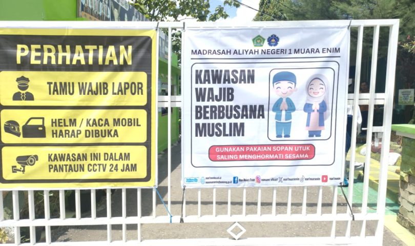 Muara Enim, (Kemenag Sumsel) – “Madrasah Aliyah Negeri 1 Muara Enim mewajibkan untuk tamu mengenakan pakaian yang sopan seperti busana muslim saat memasuki lingkungan madrasah, karena ini adalah institusi pendidikan Islam yang memiliki tata tertib dan aturan berpakaian sesuai syariat Islam untuk menjaga aurat dan kesopanan”. ujar Sri Wahyuni wakil kepala madrasah bidang humas kepada tim jurnalis madrasah saat dikonfirmasi mengenai kewajiban tamu mrenggunakan busana muslim di madrasah pada hari Rabu 2 Oktober 2025.