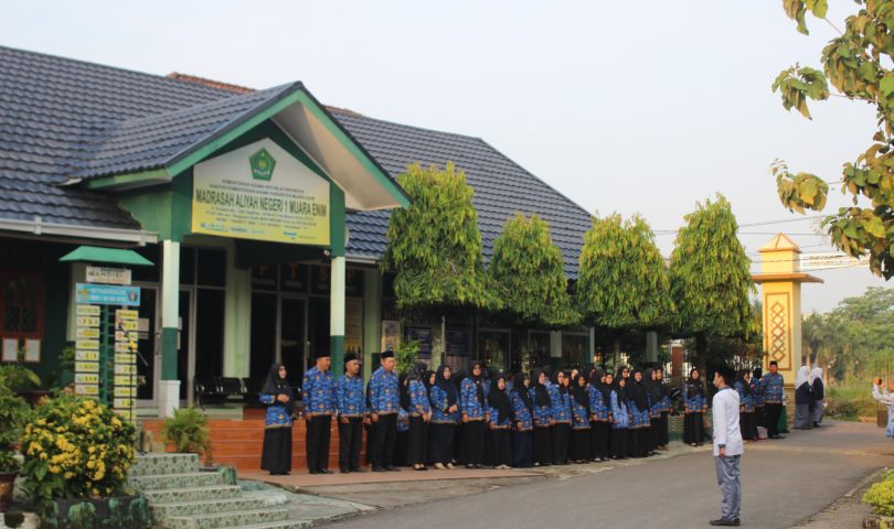 Pelaksanakan Upacara Penghormatan Bendera Merah Putih dan Do’a dipimpin langsung oleh wakil kepala bidang kurikulum Sri Astuti. Kegiatan yang dilaksanakan dihalaman madrasah ini juga di hadiri oleh seluruh Pendidik dan tenaga pendidik serta siswa kelas X dan XI program IPA dan IPS Madrasah Aliyah Negeri 1 Muara Enim.Kegiatan ini yang dimulai pukul 07:00 berjalan dengan hikmad sampai dengan selesai.