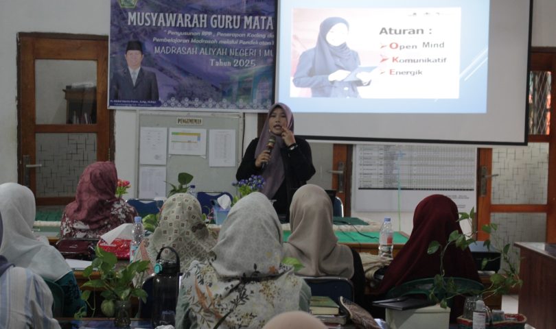 Muara Enim (Kemenag Sumsel) –Muara Enim (Kemenag Sumsel) –Pada materi kegitan MGMP pada hari ini selasa 2 September 2025 guru Madrasah Aliyah Negeri 1 Muara Enim mengikuti pelatihan menjadi guru yang penuh rasa. Menjadi guru yang ideal dan inovatif adalah sebuah tuntutan yang tidak bisa ditawar-tawar dan dielakkan lagi. Masa depan suatu bangsa sangat ditentukan oleh kader-kader muda bangsa. Sedangkan penanggung jawab utama masa depan kader-kader muda tersebut salah satunya berada di pundak guru, karena gurulah yang langsung berinteraksi dengan peserta didik dalam membentuk kepribadian, memberikan pemahaman, menerangkan imajinasi dan cita-cita, membangkitkan semangat, dan menggerakkan kekuatan dan potensi dahsyat dari peserta didik.