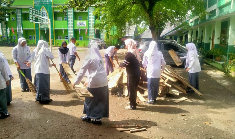 Muara Enim (Kemenag Sumsel) – Memasuki puncak musim penghujan, puluhan siswa Madrasah Aliyah Negeri 1 Muara Enim menunjukkan aksi nyata kepedulian lingkungan. Melalui gerakan gotong royong massal, para siswa bahu-membahu membersihkan setiap sudut madrasah guna mengantisipasi potensi genangan air dan penyebaran penyakit.