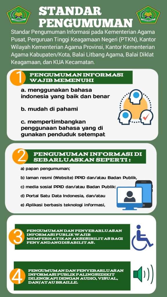 Pengumuman dan penyebarluasan Informasi Publik wajib memperhatikan Aksesibilitas bagi Penyandang Disabilitas.
